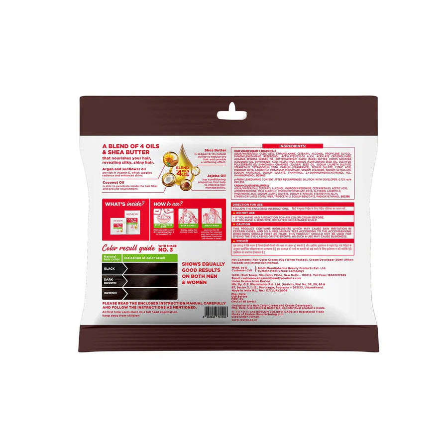 Revlon Color N Care gives ultimate nourishment & care with 4 essentials oils of Argan, Sunflower, Coconut & Jojoba oil, along with shea butter to give beautifully colored silky & shiny hair, which last up to 8 weeks with 100% GRAY COVERAGE and NO AMMONIA. Argan and Sunflowe oil are rich in vitamin E, which supplies radiace and enhances shine. Coconut oil is able to penetrate inside the hair fiber and provide nourishment. Shea butter is known for its natural ability to reduce dry hair and provide a softening effect. Jojoba oil has condiitoning properties that help to improve hair managebility.