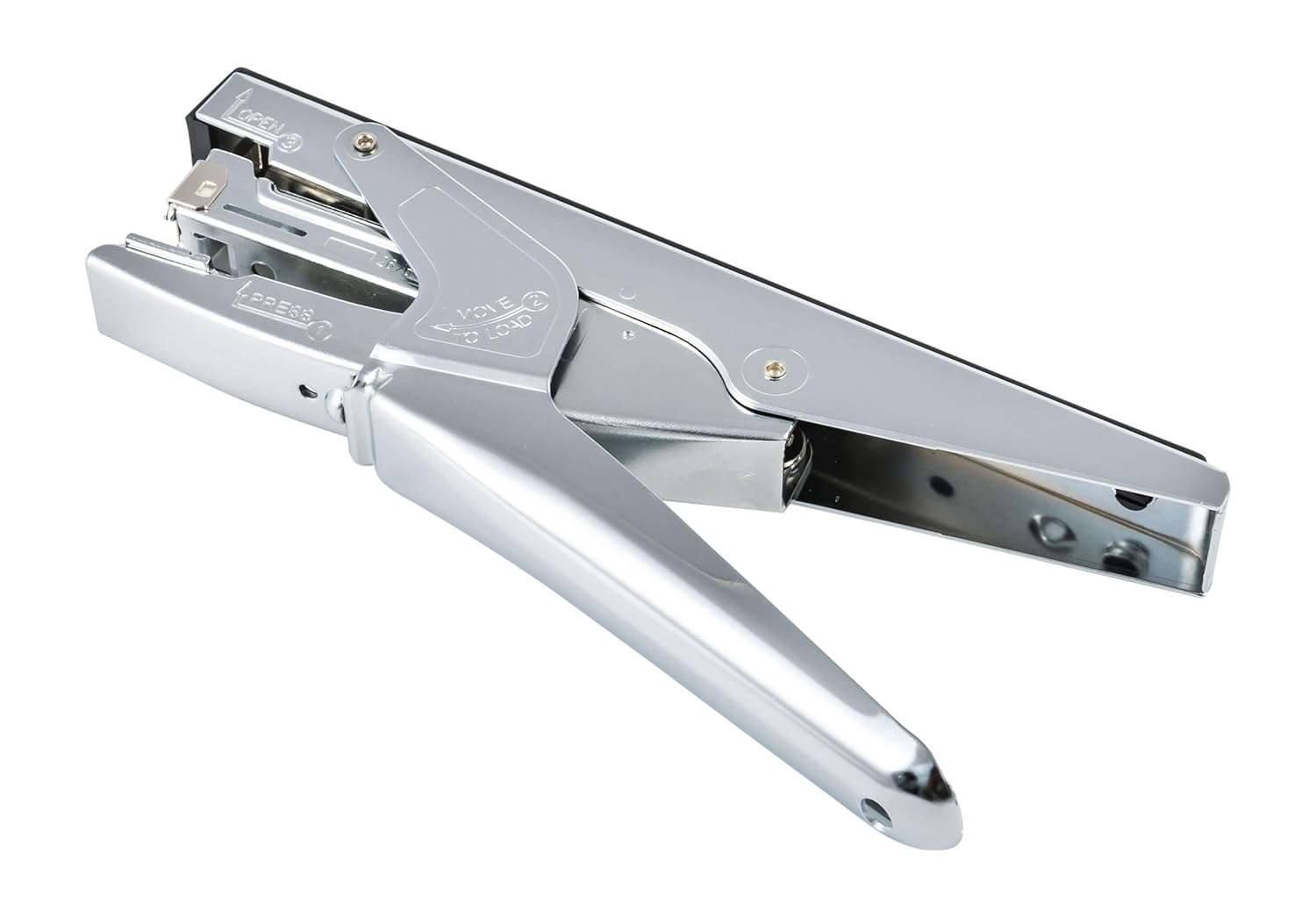 - Built-In Reload Indicator & Staple Remover ; Metal Body With Nickel Chrome Plating.