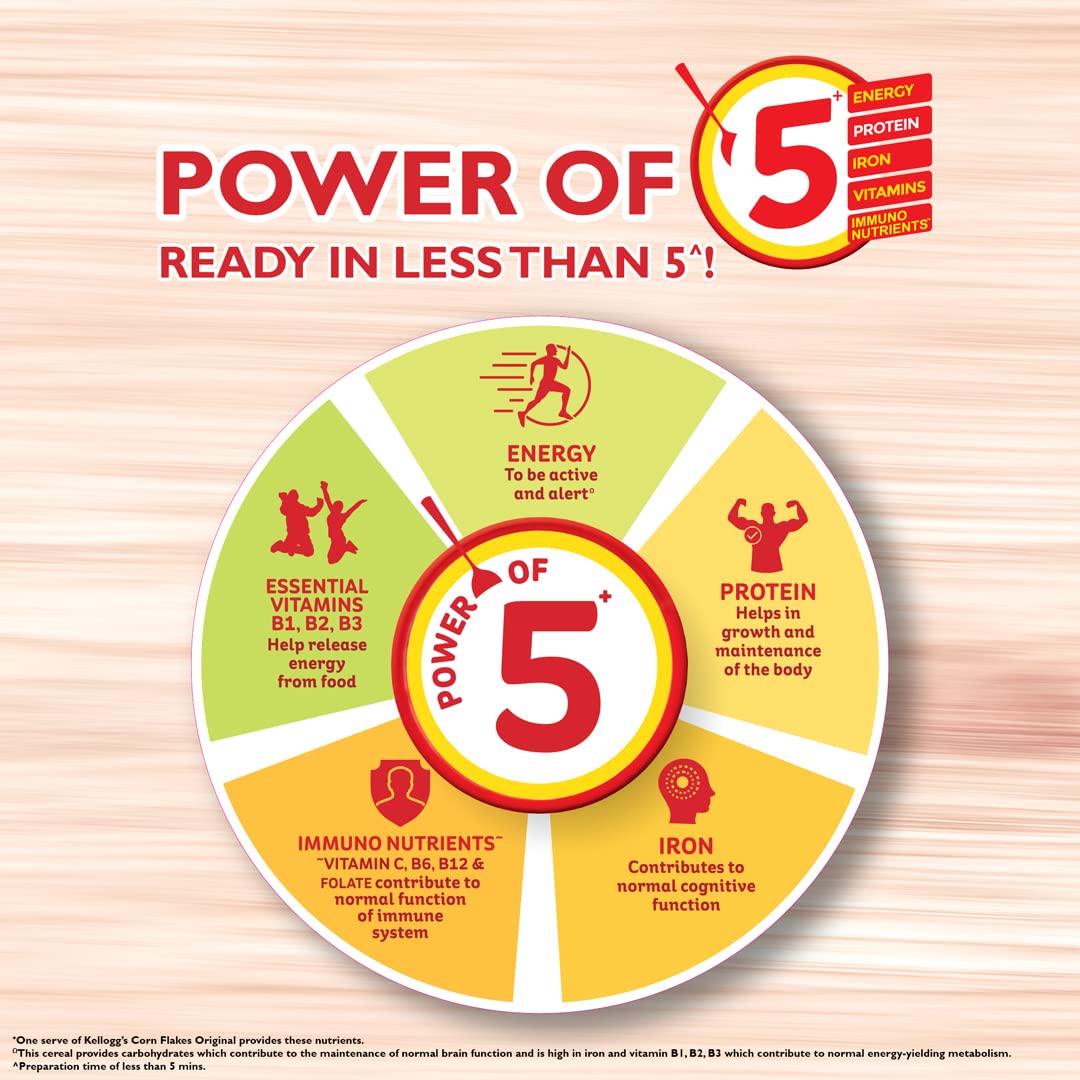 - Packed with Nutrients - Now don't compromise on morning nourishment with Kellogg's Corn Flakes. It is not only tasty but is also High in Iron, Vitamin C, B1, B2, B3, B6 and Source of Folate and Vitamin B12.